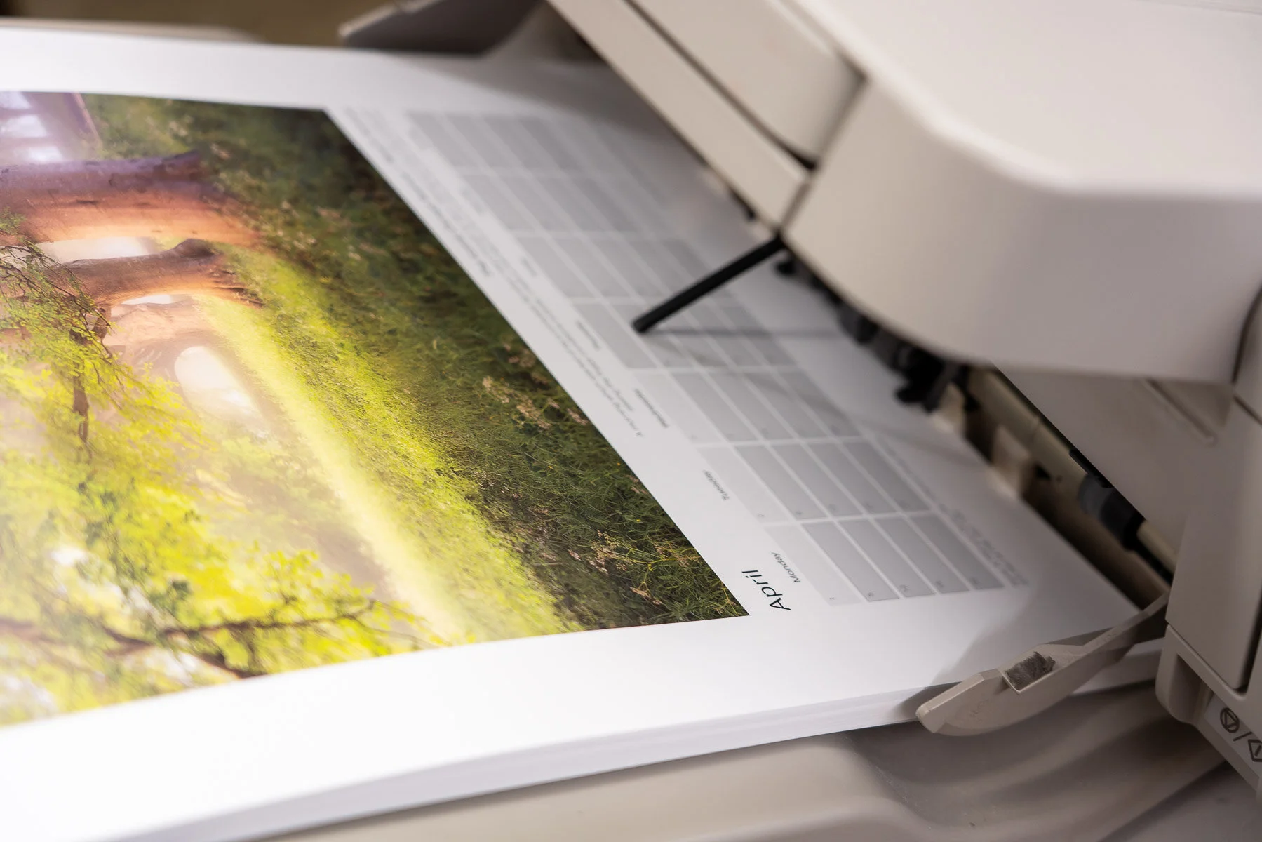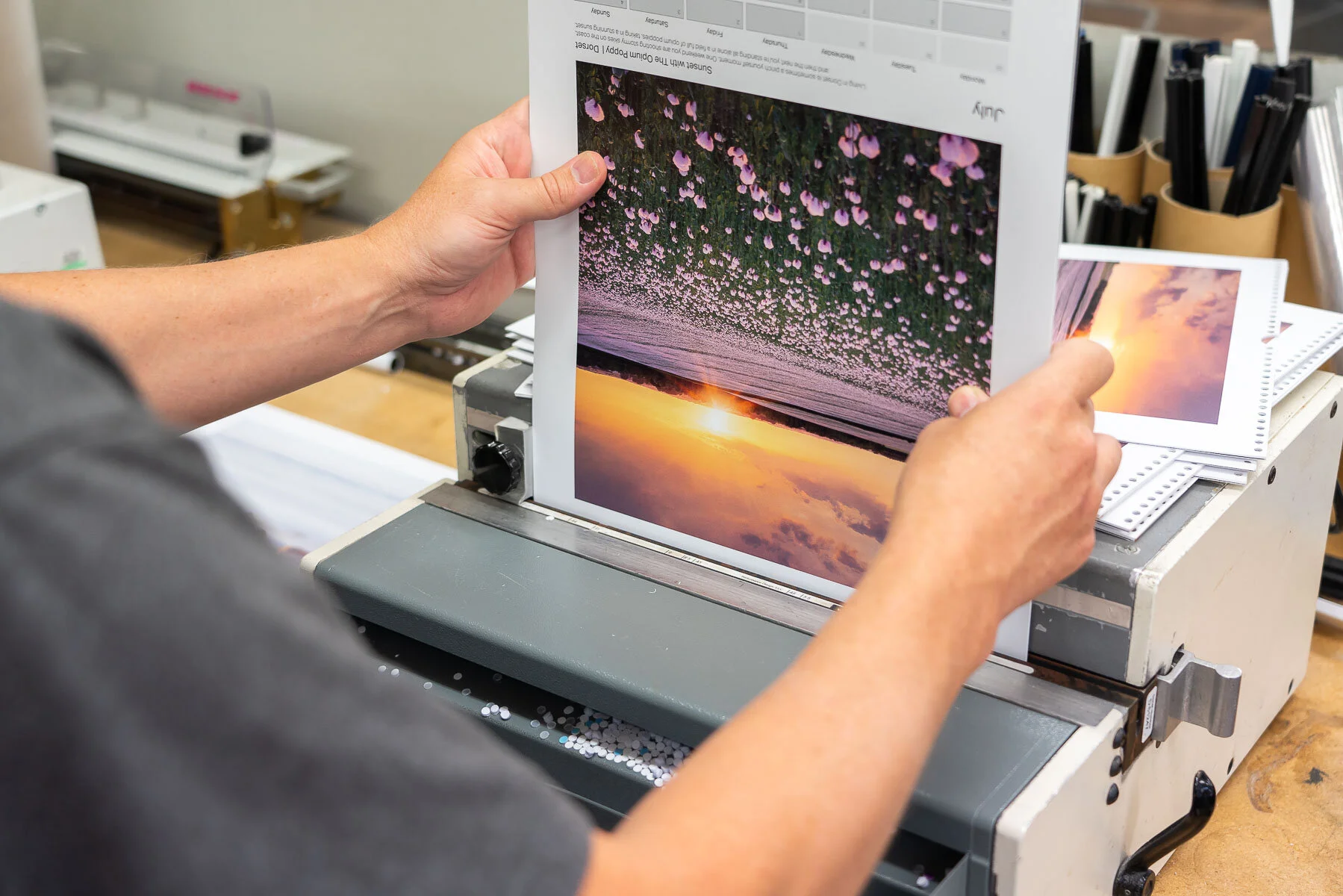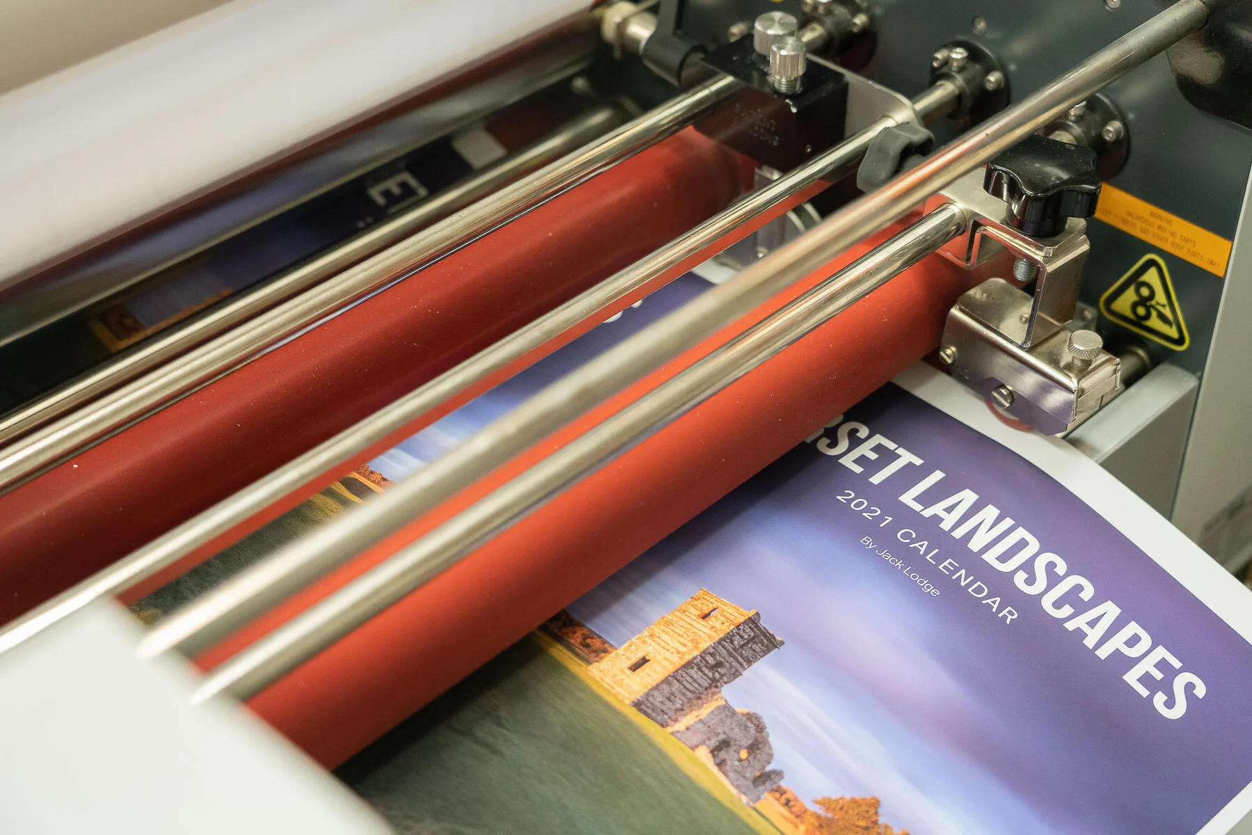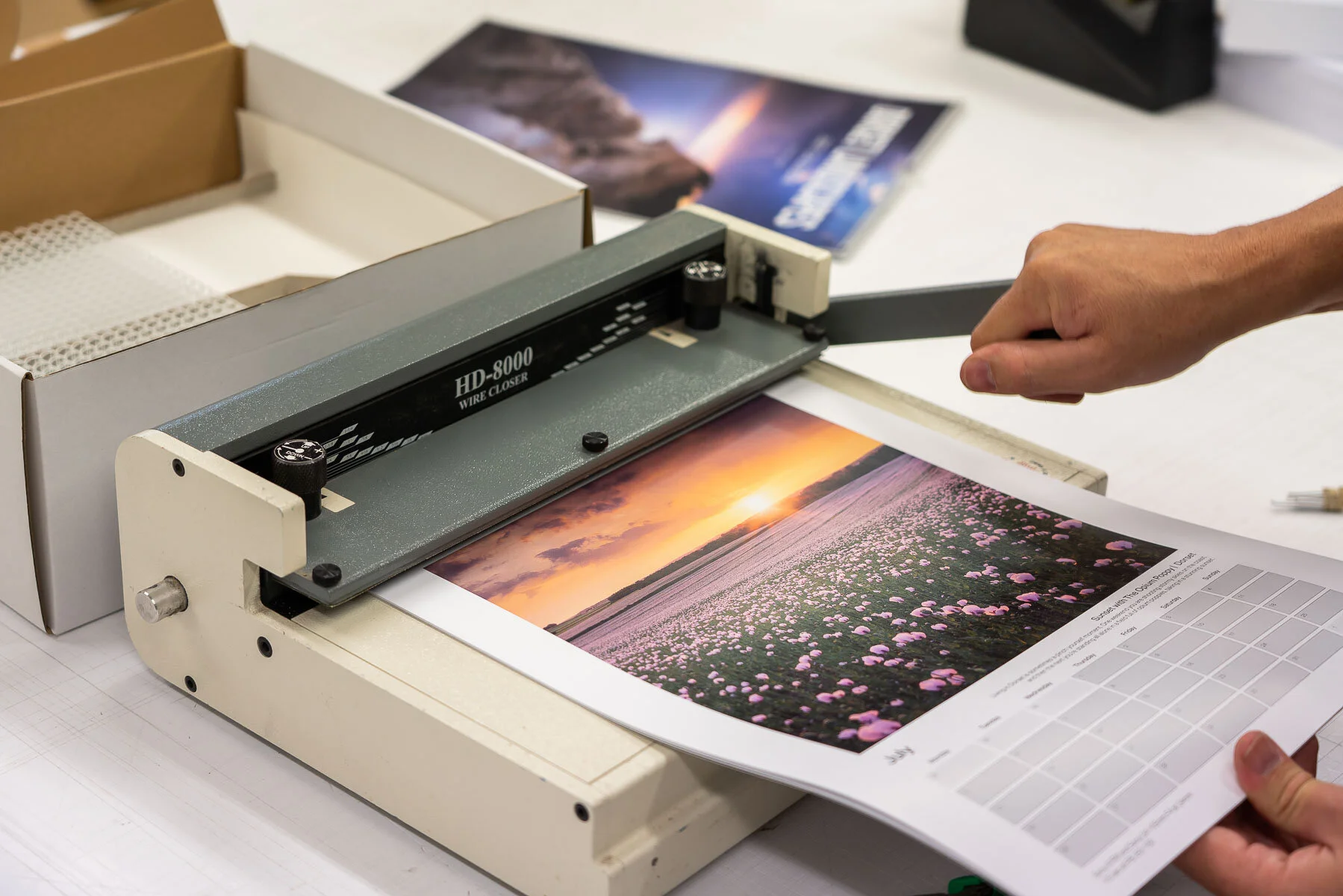 After loading the high-quality proofed PDF to the printing software, the first step is to print the front and back covers for the 2021 Calendar. For me, first impressions when touching the calendar are SO important. I want it to feel high-quality and bespoke, so we selected a heavier silk paper for the covers (400gsm) that would later be laminated with soft-touch finish - more on that process later. First time feeling the covers had me second guessing if it was more than one page, the quality really is mind blowing.