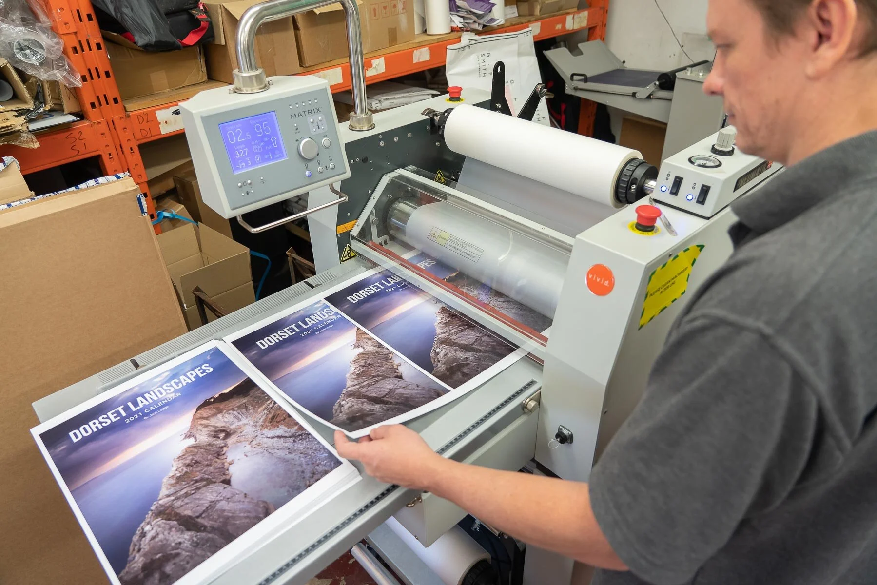 What many people forget is, and I was once partial to this before understanding the true workmanship behind running a successful print studio, was that each and every calendar is pretty much hand made by a single person. As soon as the paper is off the print line, covers are laminated and all trimmed, it was down to Wayne to put the calendars together and start hole punching ready to add the hanging spirals.